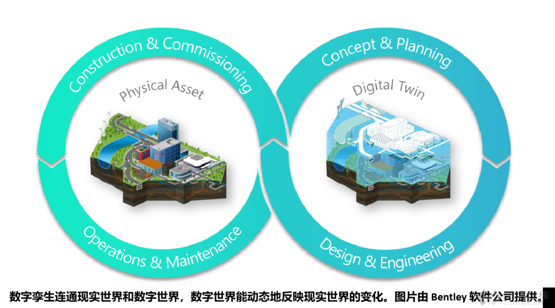 Bentley 将数字孪生定义为人造环境或自然环境中实物资产、流程或系统的真实动态数字化表示。数字孪生连通现实世界和数字世界,数字世界能动态地反映现实世界的变化,从而代表其实体对应物的近乎实时或实时状态、工况或位置。