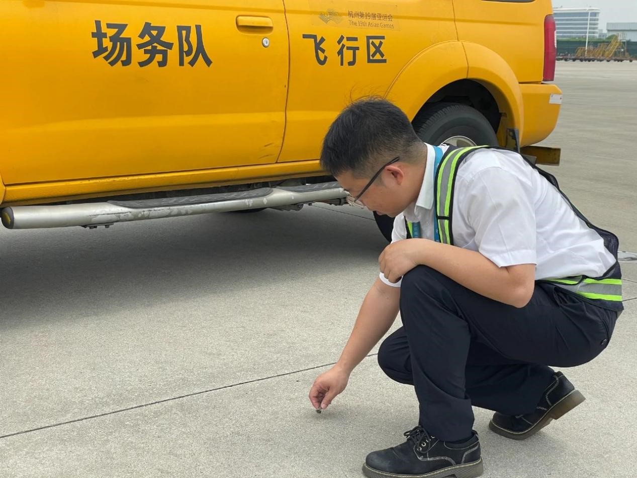 杭州机场工作人员进行FOD排查