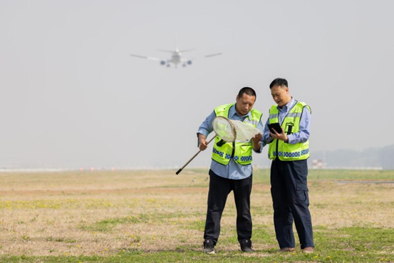 北京首都国际机场坚持生态治理,从生物链的角度出发,科学规划并实施了飞鸟驱避与防治措施。工作人员持续在飞行区600万平方米的土质区开展草种优化工作,种植生长缓慢、不易生虫、结籽率低、适应性强的野牛草,从“食”的角度降低土质区草坪对鸟类的吸引力。