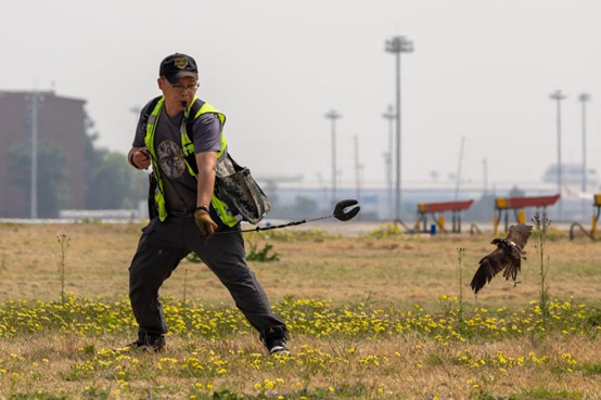在做好生态治理的同时,北京首都国际机场于2018年在国内率先通过训练有素的猎鹰对机场上空的鸟类进行驱赶。工作人员利用位于食物链顶层的猛禽,对其余鸟类的觅食、栖息等行为造成有规律的、持续的生存压力,迫使其远离机场。
