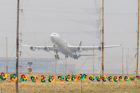 北京首都国际机场跑道周边设置物理拦鸟网和利用视觉驱鸟的彩色风轮