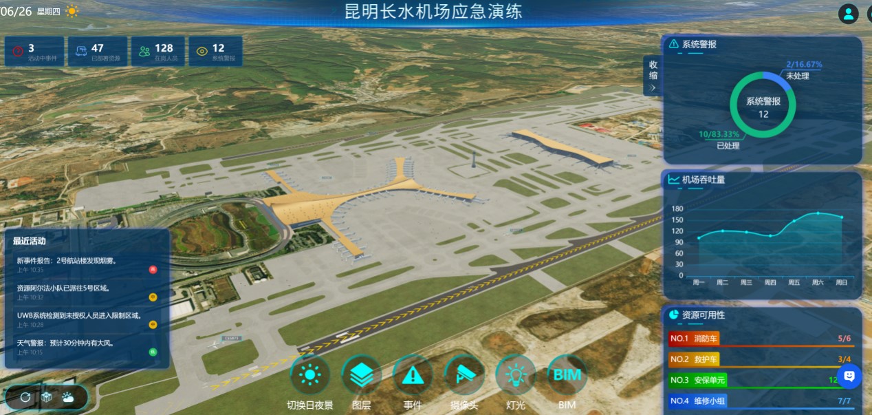 2024年,昆明机场飞行区控制中心相继上线了跑道监控补盲、巡场车实时监控等功能,预计将在2025年内实现飞行区全区域集中监控。与此同时,飞行区控制中心的指挥大厅内还新增了护场、不停航施工专班席位,建立“就近处置、联动协调”的快速响应机制,并预留除冰雪处置席位,为后续实现特情处置全流程可视化奠定基础。