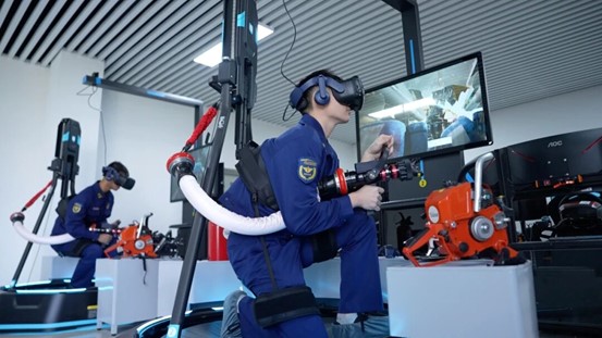 中国民用航空飞行学院民航安全工程学院相关工作人员介绍,数智战训平台是民用航空器消防救援VR(虚拟现实)战训平台成果在行业内的成功转化。作为国内首个基于虚拟仿真技术、数据算法及分析、半实物模拟仿真技术开发的航空器消防救援战训平台,数智战训平台通过与半实物仿真设备(水枪、灭火器、破拆工具等)共同使用,能够使民航工作人员沉浸式完成消防教学和训练,支持6名消防员与指挥员的协同消防作战训练。